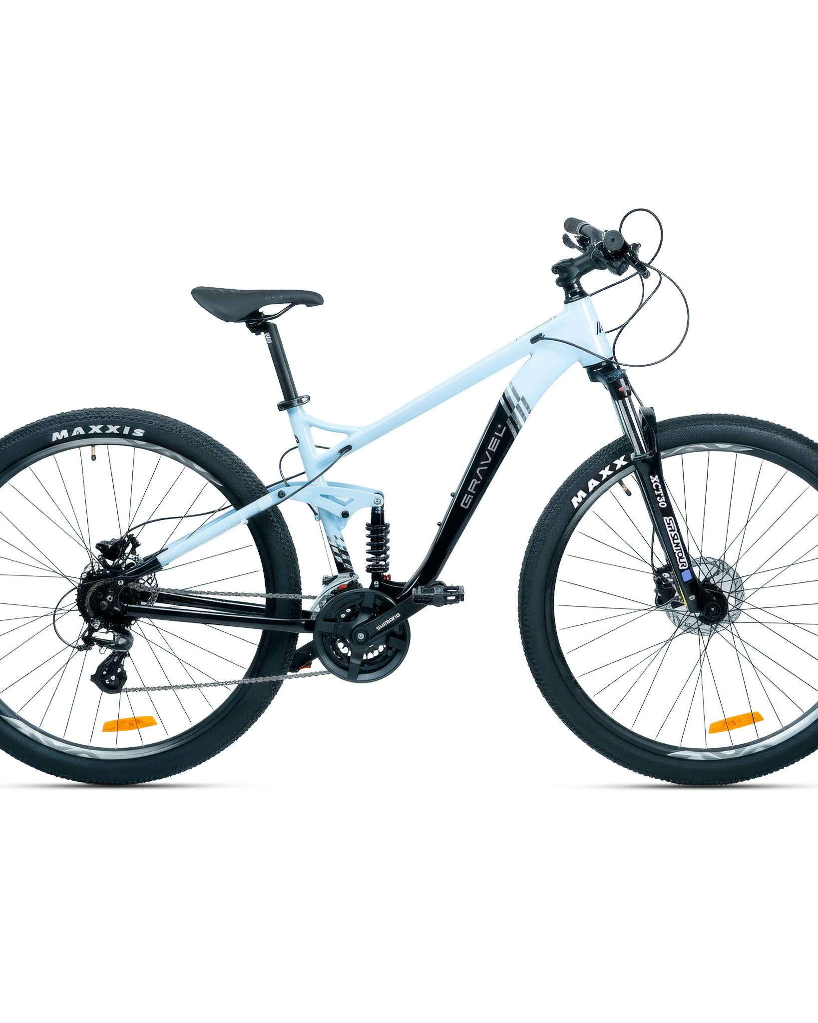 Suspensión SUNTOUR SF20 XCM doble, hidráulica con ajuste y bloqueo. Llantas Maxxis M333 29x2.1 Double Layer Knife Ring para rodar en pavimento o montaña.