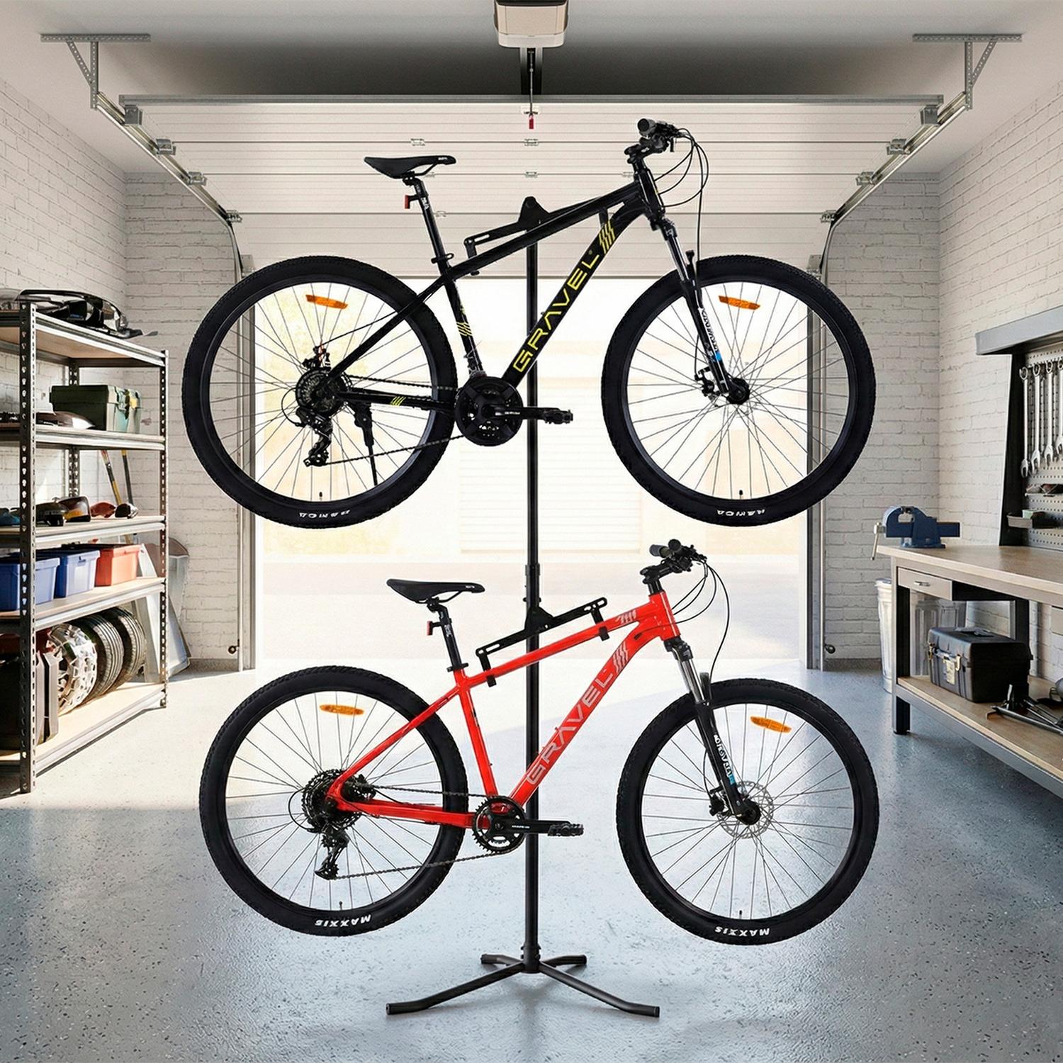 Soporte vertical GRAVEL Parking Stand para organizar hasta dos bicicletas. Resistente, estable y perfecto para ahorrar espacio.