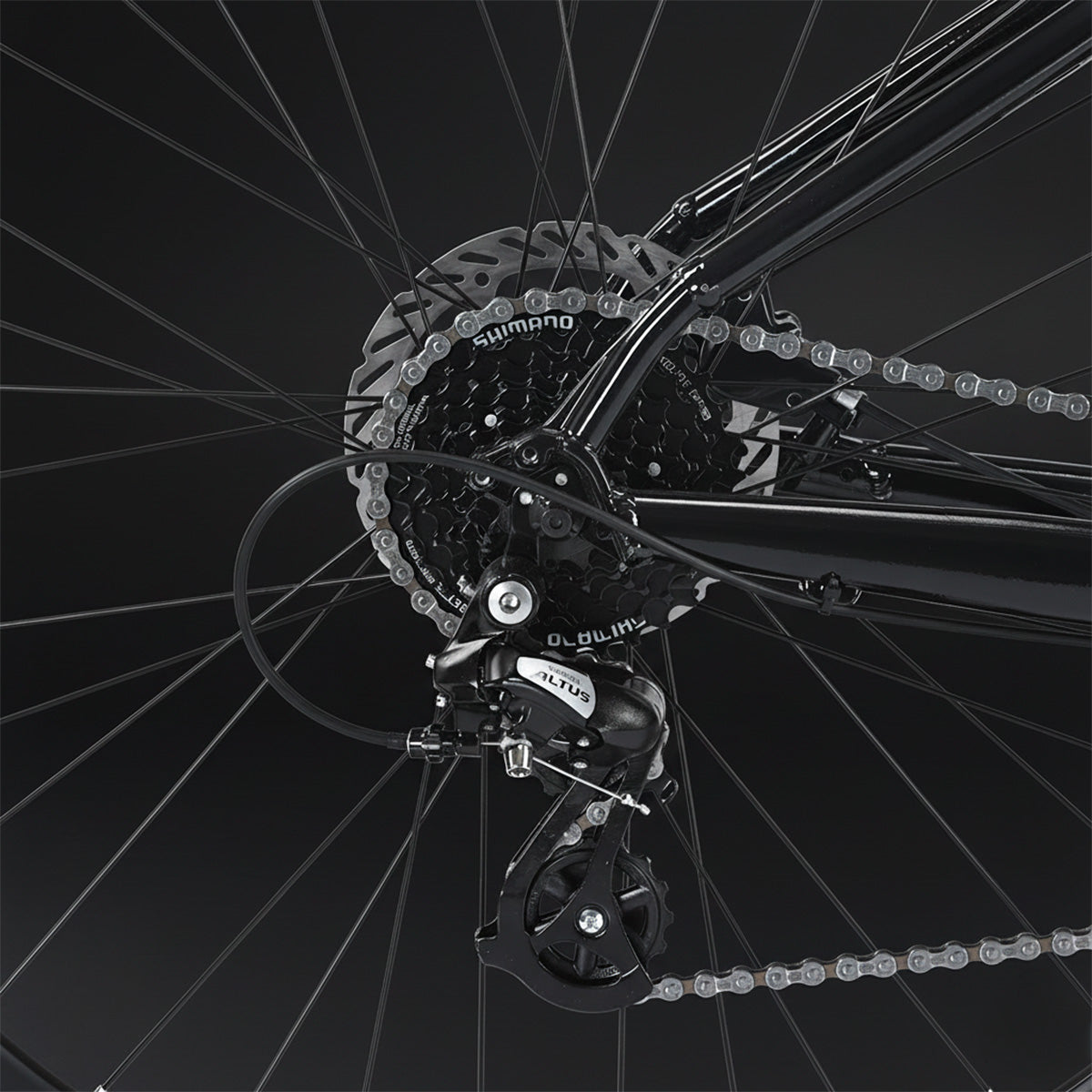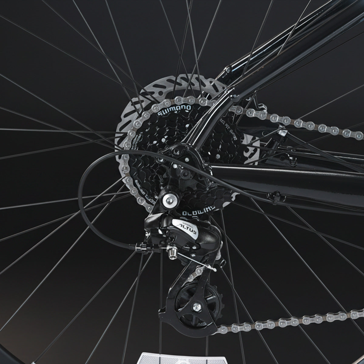 Equipada con componentes Shimano Altus, la Andes garantiza cambios precisos y una respuesta fluida en cada pedaleo. Su rango de 24 velocidades te permite adaptarte fácilmente a pendientes exigentes o tramos rápidos.