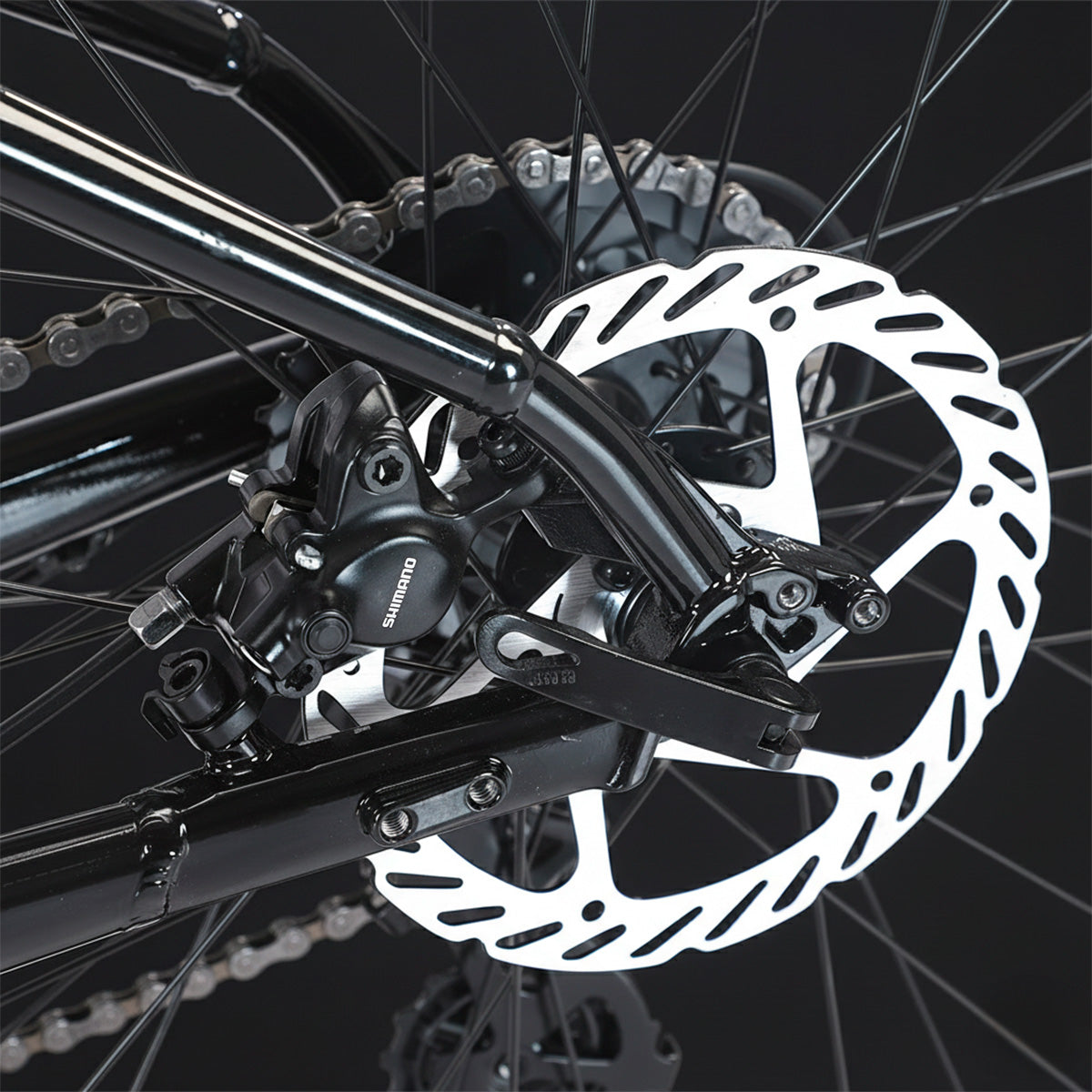 Los frenos hidráulicos Shimano MT200 proporcionan una respuesta inmediata y progresiva. Con ellos, cada bajada es más segura y cada curva, más precisa.