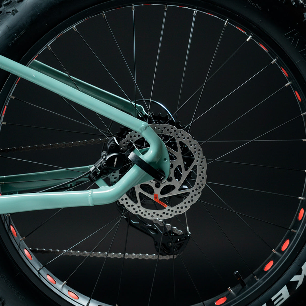 Los neumáticos 24*4.0" KENDA ofrecen gran adherencia para una tracción segura en terrenos irregulares, haciendo cada paseo más cómodo. Sus frenos SHIMANO MT200 brindan potencia de frenado confiable. Con esta bicicleta, tendrás más impulso, menos esfuerzo y máxima diversión.