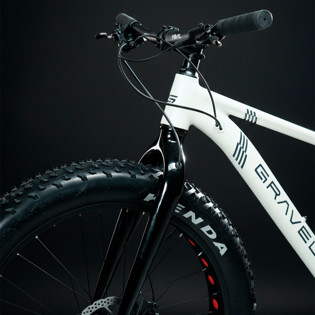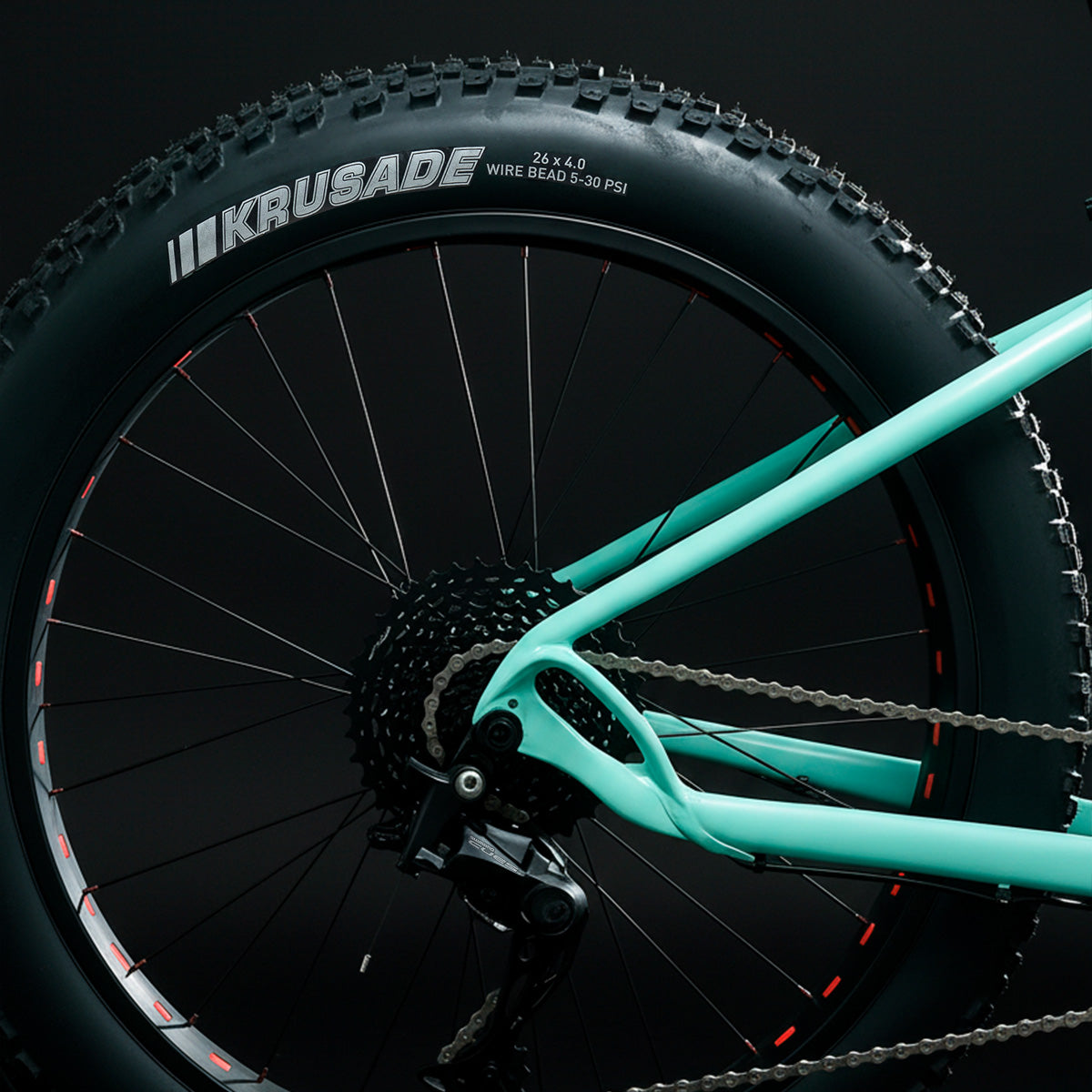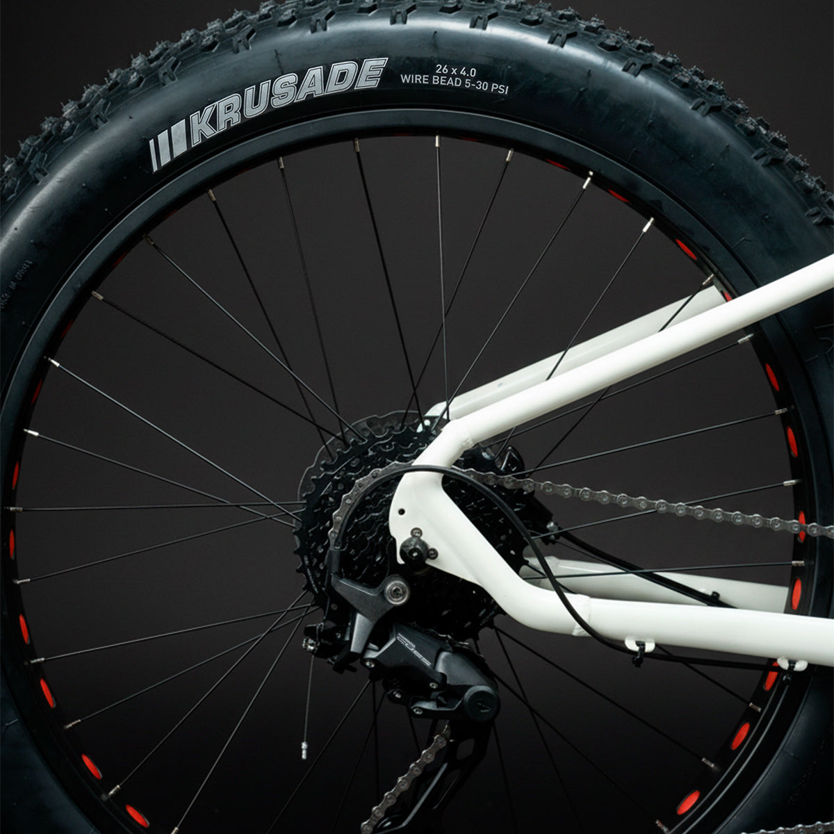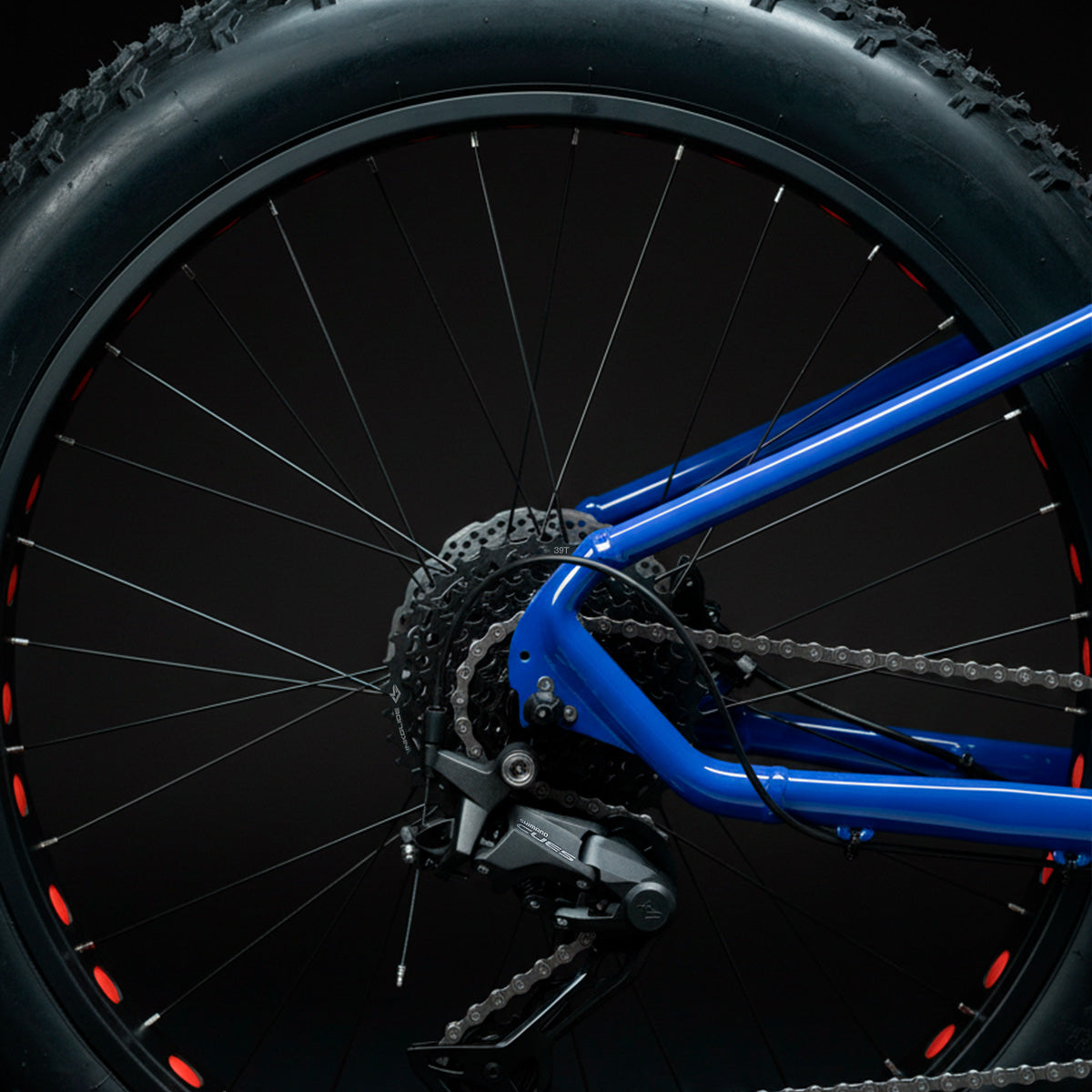 Robusta y confiable. Con cuadro de aluminio 6061, transmisión Shimano CUES U6000 de 10v, frenos hidráulicos Shimano MT199 y llantas Kenda 26x4.0 de alto agarre, es perfecta para rutas en arena, nieve, grava o senderos extremos.