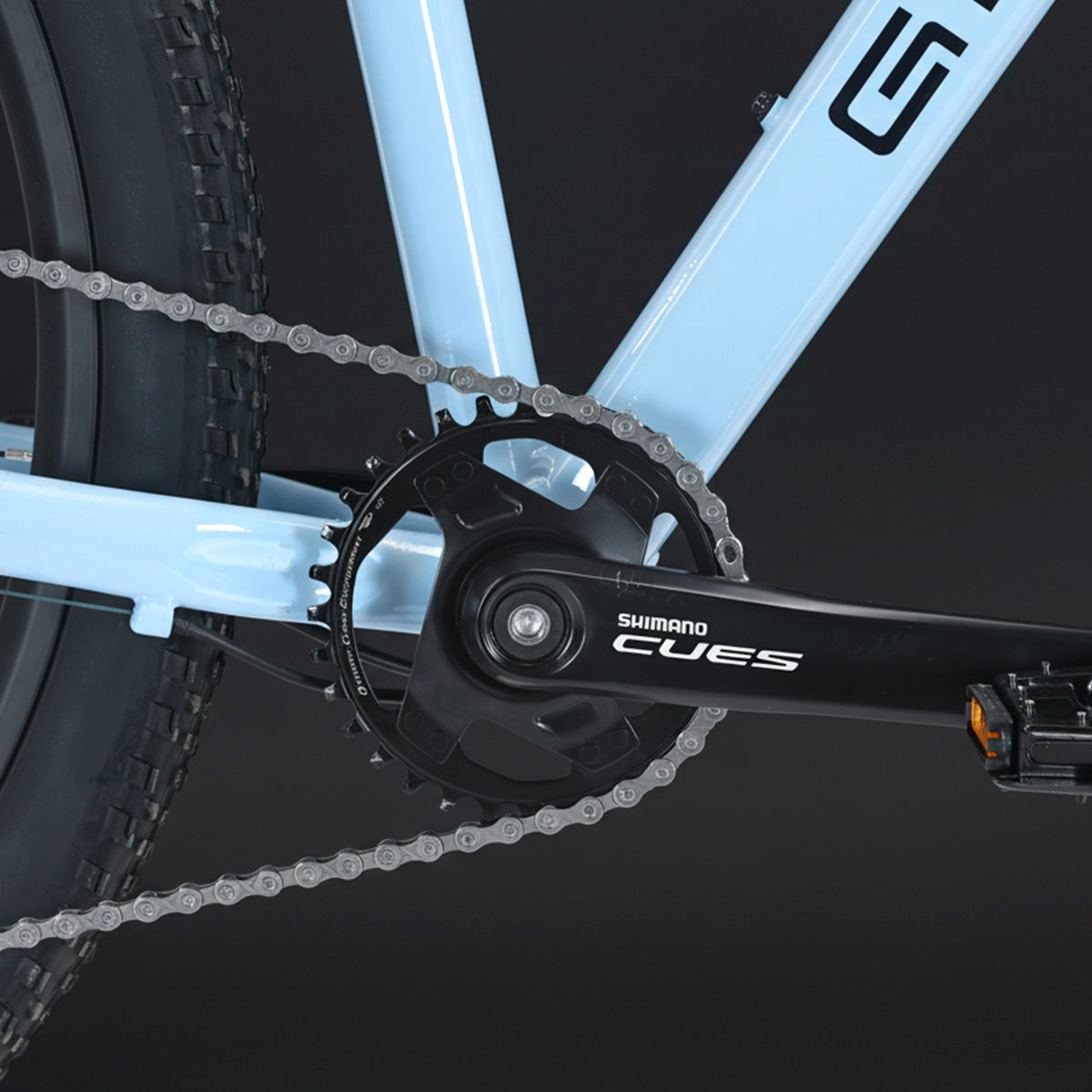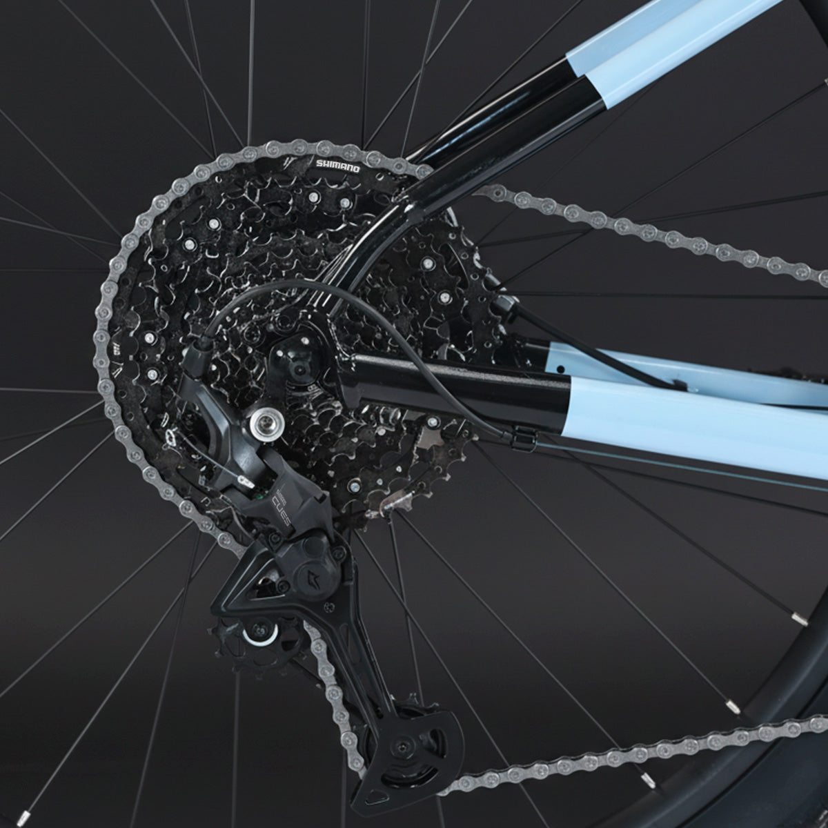 Equipada con grupo Shimano CUES de 11 velocidades, ofrece cambios exactos y una respuesta fluida. El rango amplio permite subir con potencia y acelerar con control en cualquier tipo de pendiente.
