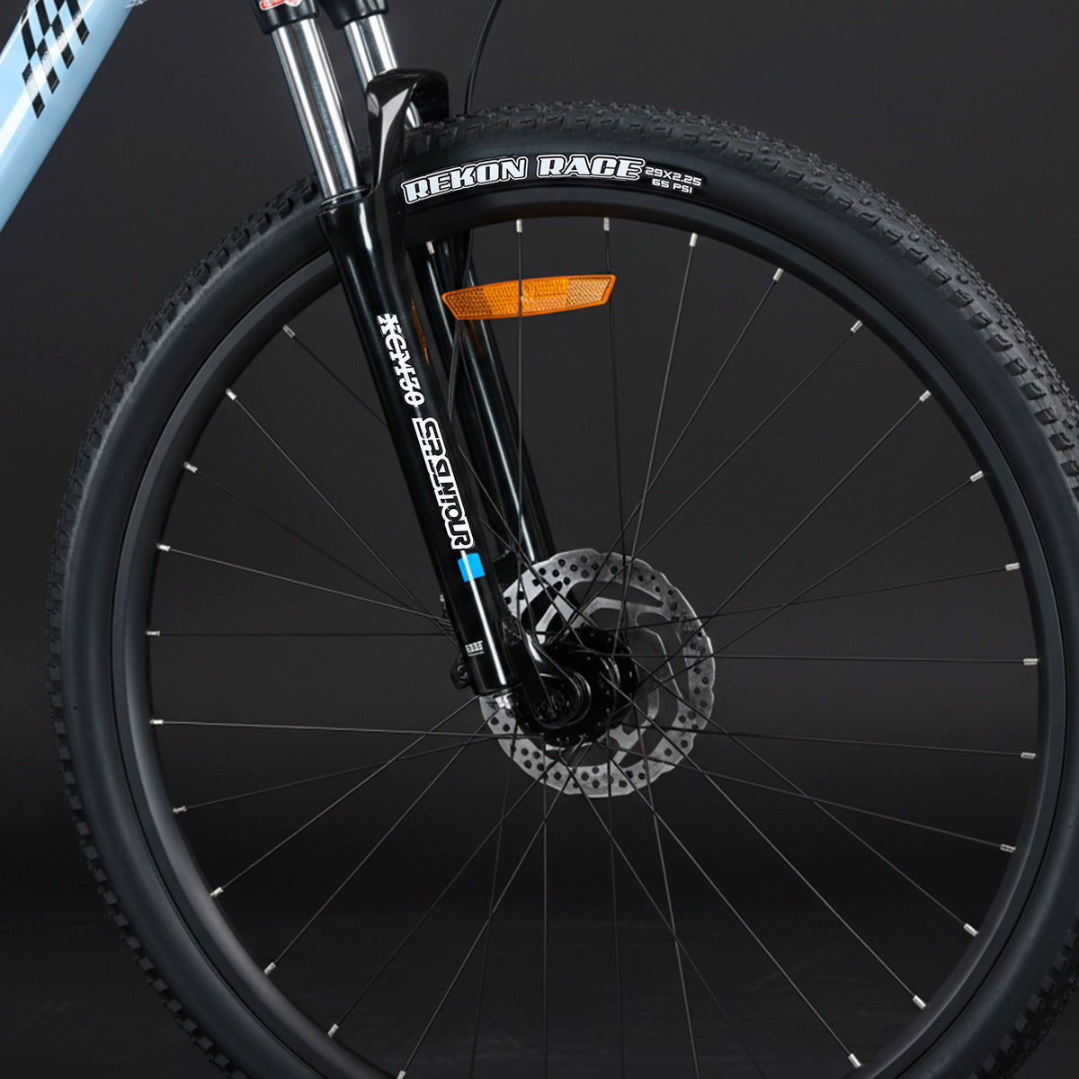 Con suspensión Suntour XCM30 de 100 mm y llantas MAXXIS 29 × 2.25, esta bicicleta se adapta con precisión a caminos técnicos y rutas de montaña. Absorbe impactos, mantiene tracción y brinda estabilidad en cada curva.