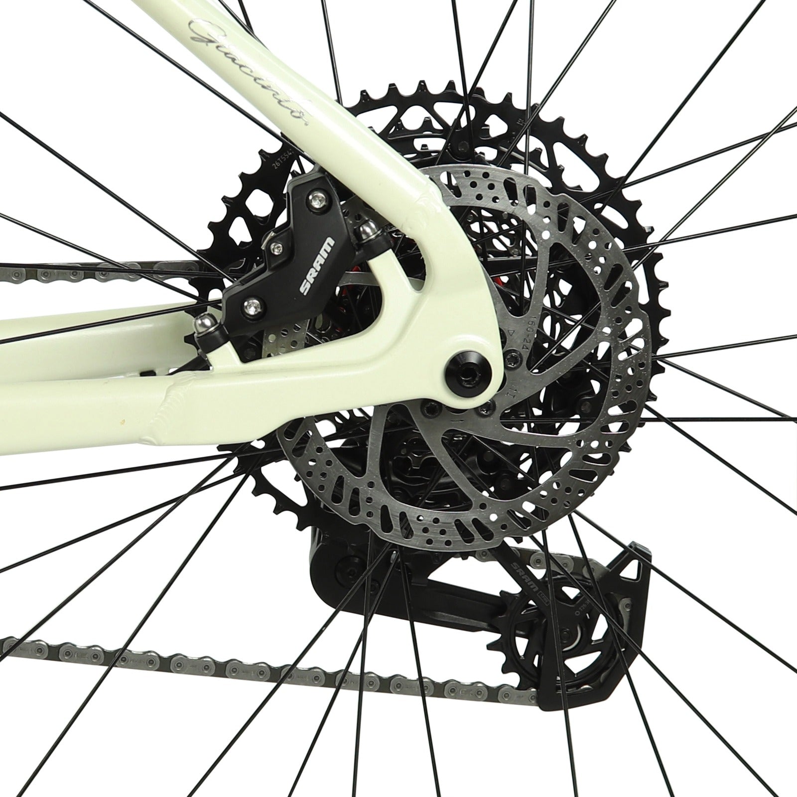 Combina cuadro de aluminio, suspensión RockShox de 120 mm y transmisión SRAM Eagle 1x12 para ofrecerte potencia, estabilidad y cambios precisos en cualquier terreno.