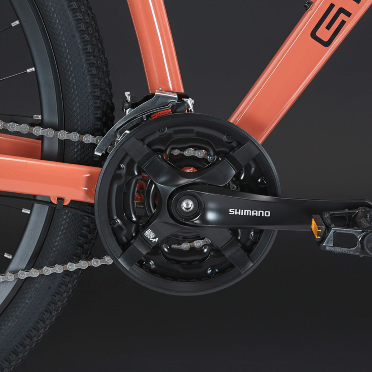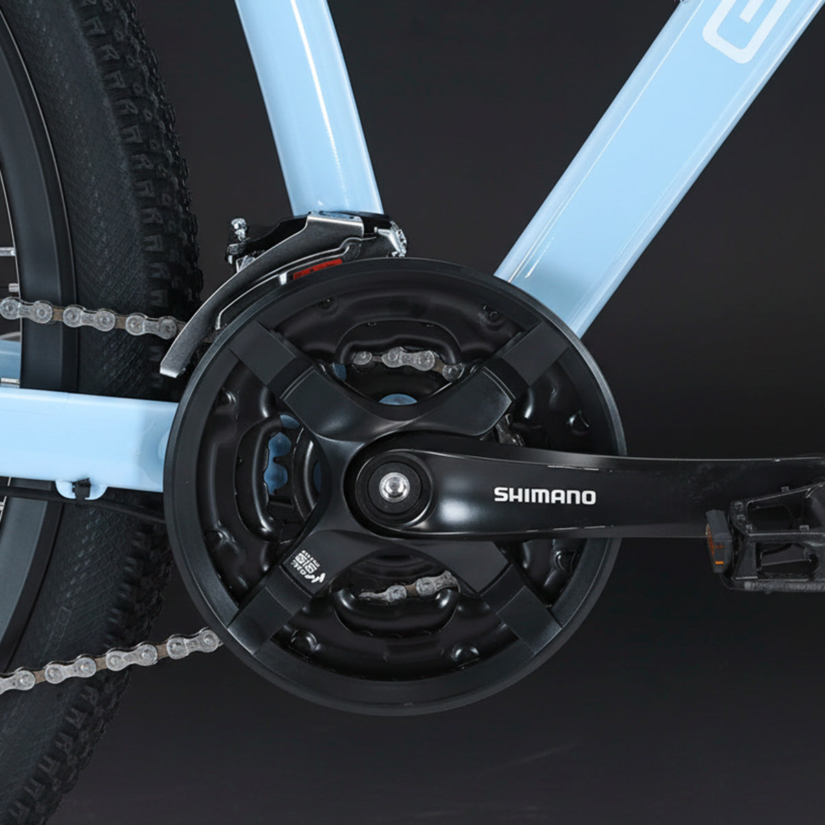 Equipada con componentes Shimano Altus, la Andes garantiza cambios precisos y una respuesta fluida en cada pedaleo. Su rango de 24 velocidades te permite adaptarte fácilmente a pendientes exigentes o tramos rápidos.