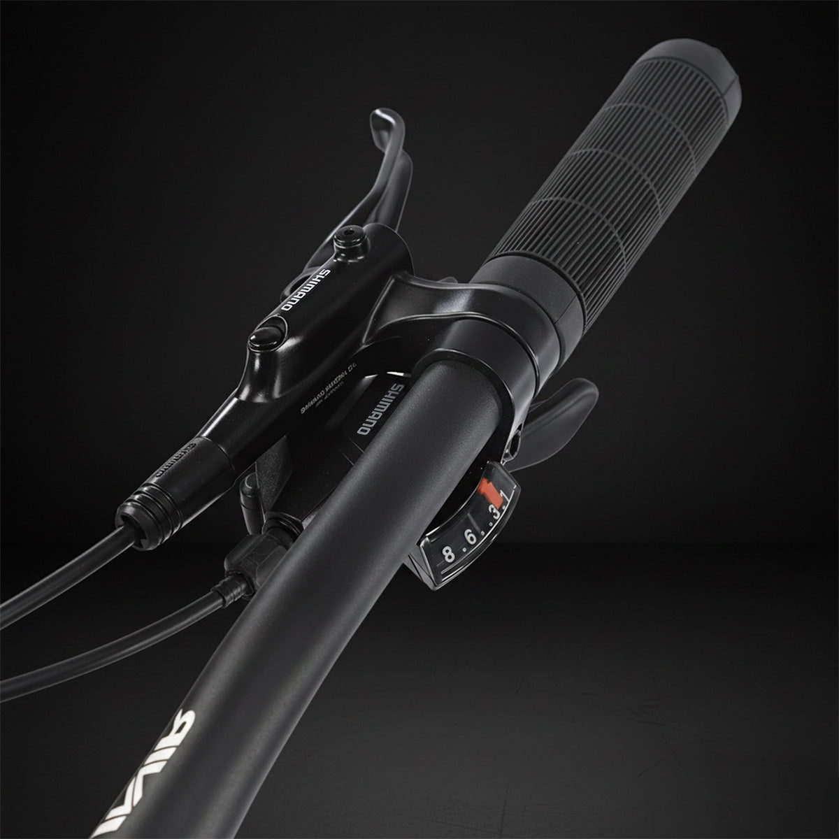 Los frenos hidráulicos Shimano MT200 proporcionan una respuesta inmediata y progresiva. Con ellos, cada bajada es más segura y cada curva, más precisa.