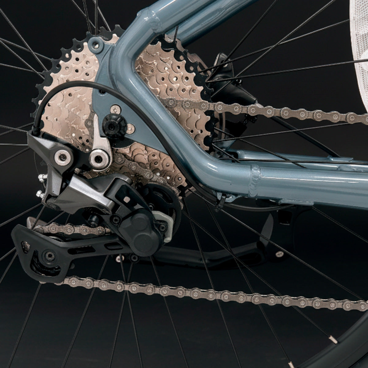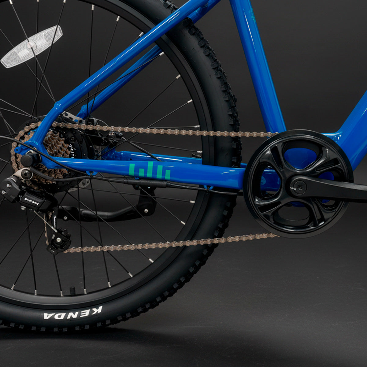 El sistema Shimano Tourney 14 velocidades garantiza cambios suaves y exactos, brindando un control total sobre la cadencia tanto en rutas planas como en ascensos exigentes.
