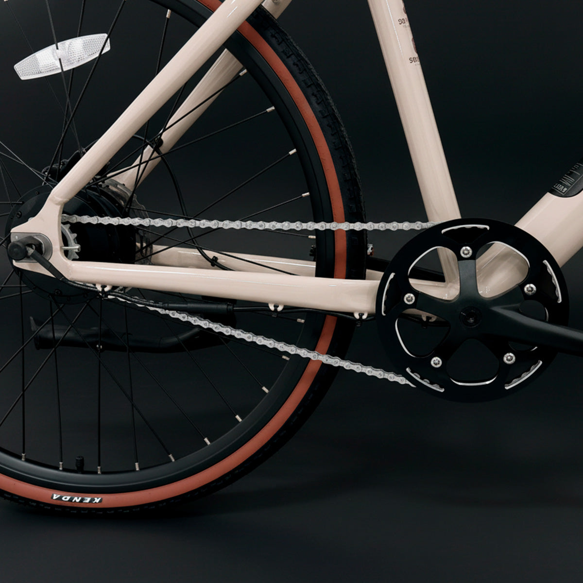 Los frenos de disco mecánicos ofrecen potencia y seguridad de frenado en cualquier condición climática. Junto a las llantas 700x35C Compass, aseguran una rodada firme, fluida y confiable en todo tipo de superficie.