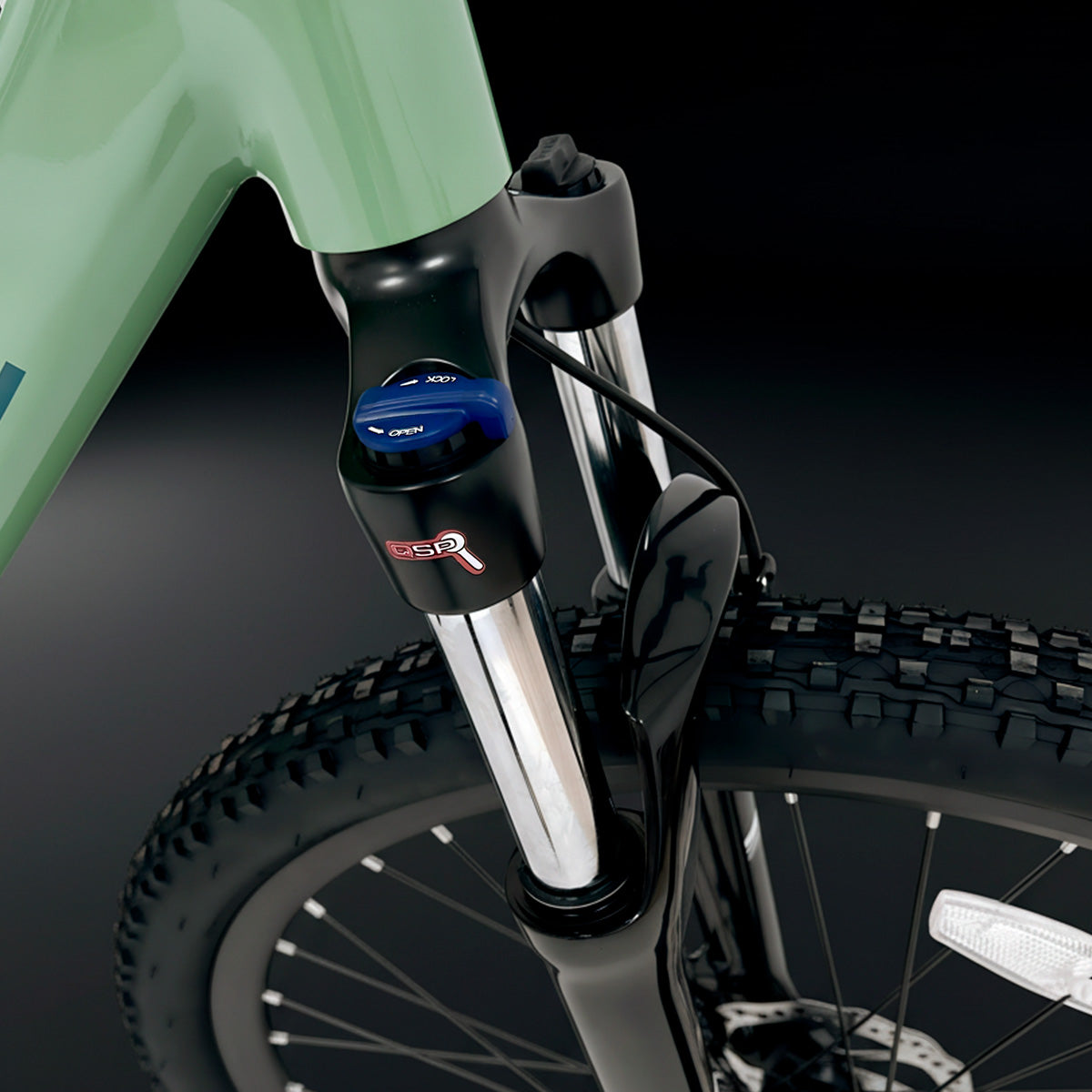 Con transmisión Shimano de 7 velocidades, suspensión Suntour SR-XCM, frenos de disco mecánicos y llantas KENDA 27.5 x 2.1”, garantiza confort, seguridad y rendimiento equilibrado.