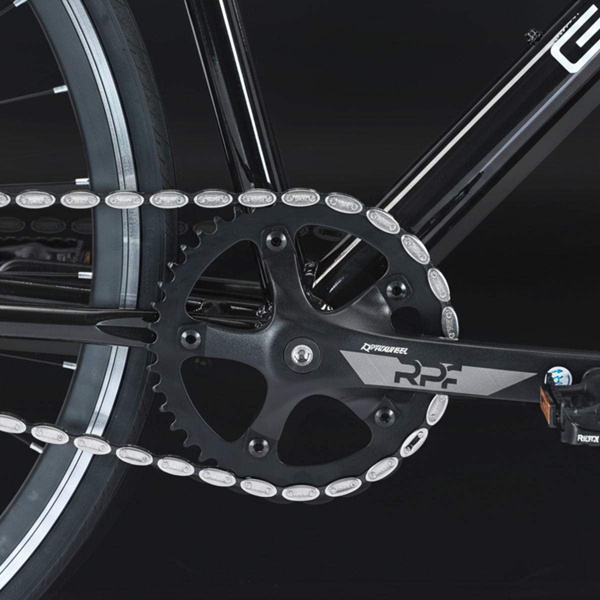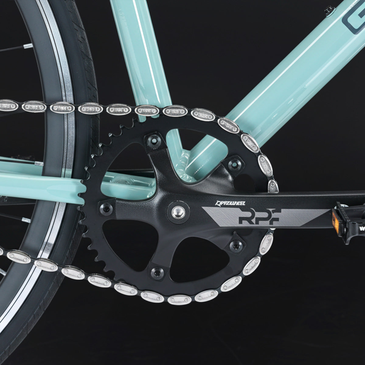 Cuadro de aluminio 6061 con monoplato 44T para un pedaleo ágil y eficiente en cada recorrido urbano.