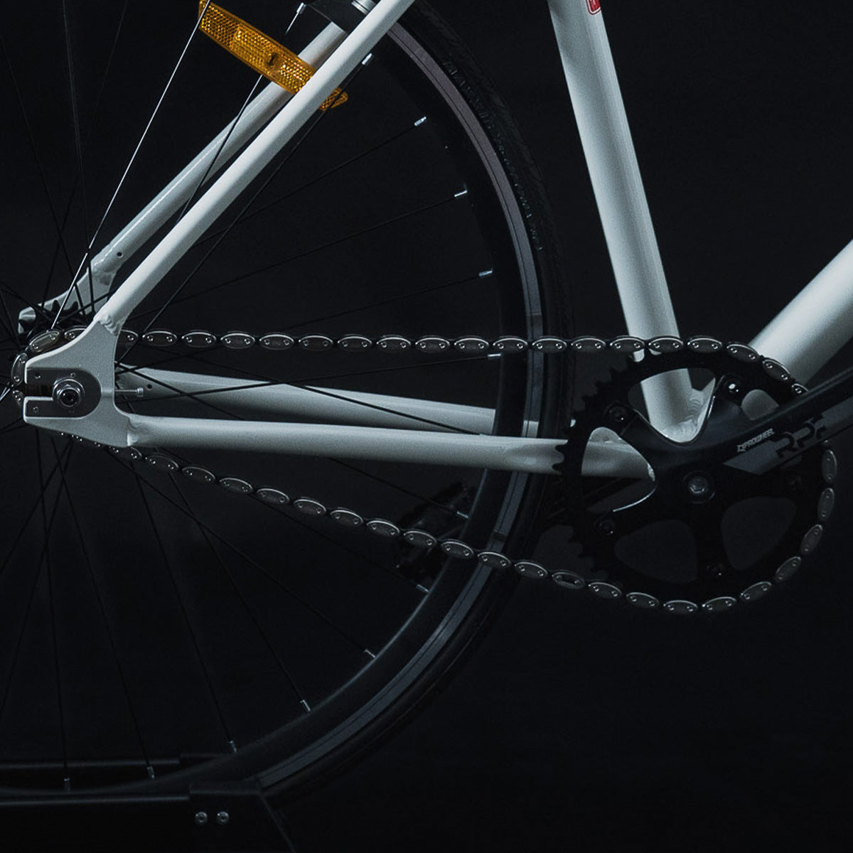 Cuadro de aluminio 6061 con monoplato 44T para un pedaleo ágil y eficiente en cada recorrido urbano.