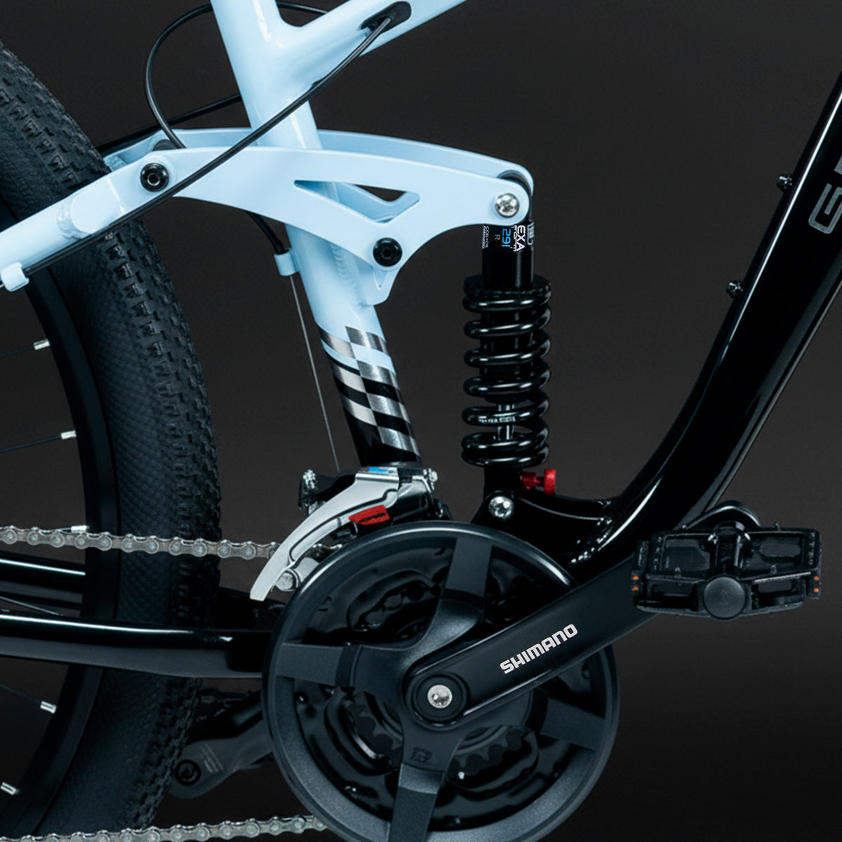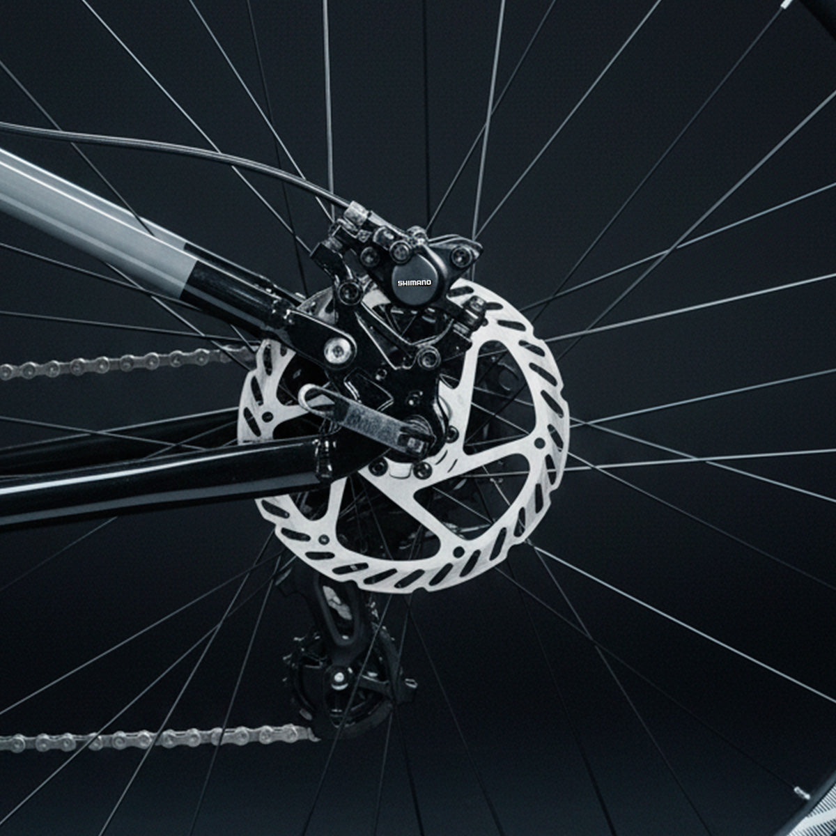 El sistema monoplato Shimano FC-TY301 de 32T y el cambio trasero Altus RD-M310 ofrecen una transmisión fluida, precisa y duradera. Con una amplia gama de desarrollos, podrás enfrentar subidas, descensos y tramos planos con total confianza.