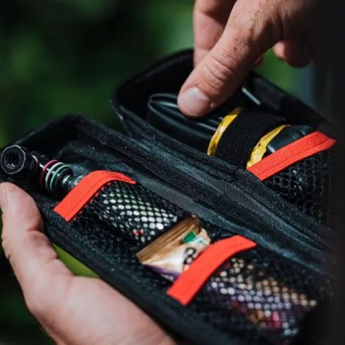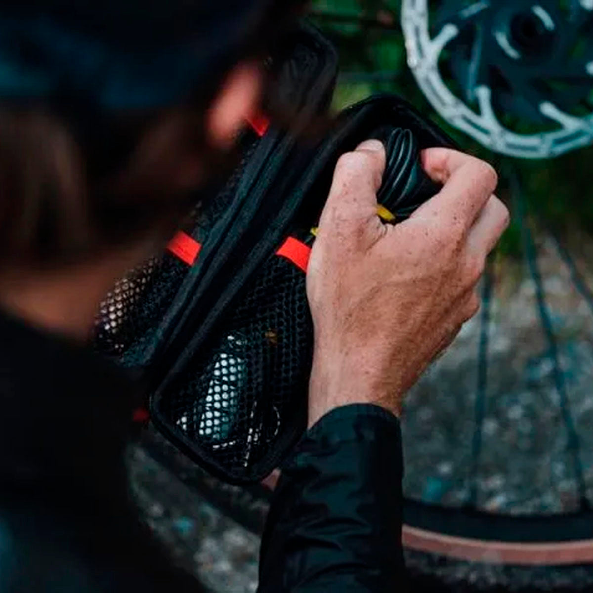 Su diseño compacto y elegante se adapta a las bicicletas de carretera, grava y montaña en cualquier terreno. Es el montaje ideal para proteger tus herramientas de la lluvia, el barro y la humedad mientras vas en bicicleta.