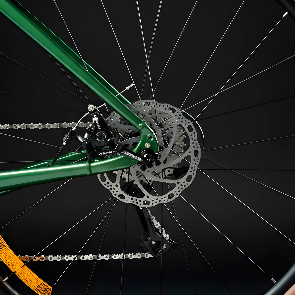 Las llantas Continental Llantas Continental 700x40C, 120 TPI para mejor tracción ofrecen un agarre y estabilidad excepcionales en todo tipo de superficies. Combinadas frenos hidráulicos Shimano para máximo control, garantizan una frenada segura y confiable, sin importar las condiciones climáticas. Disfruta de cada recorrido con confianza y rendimiento.