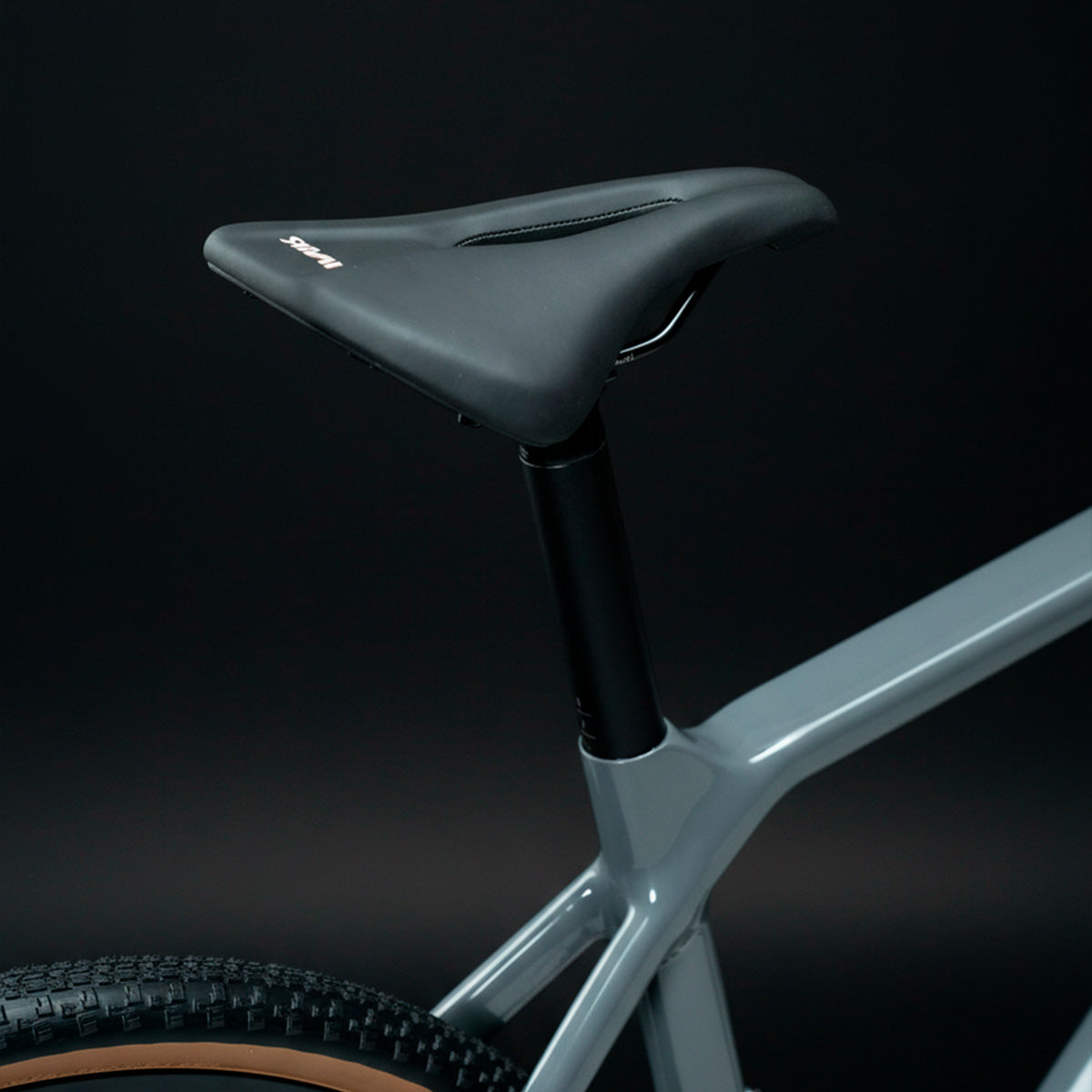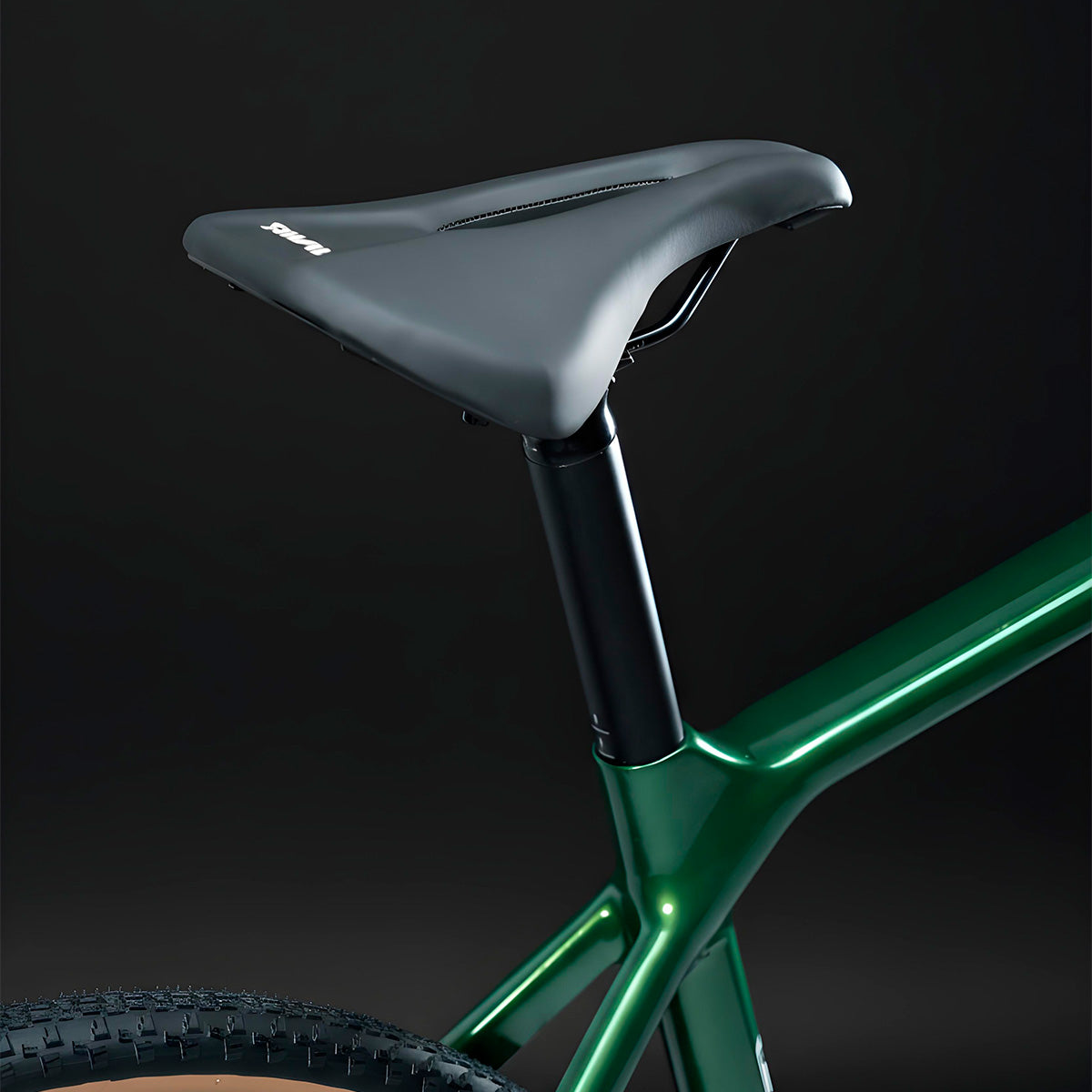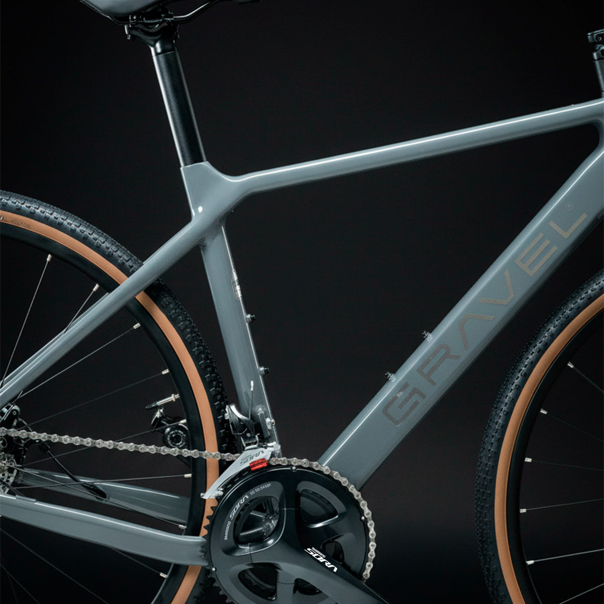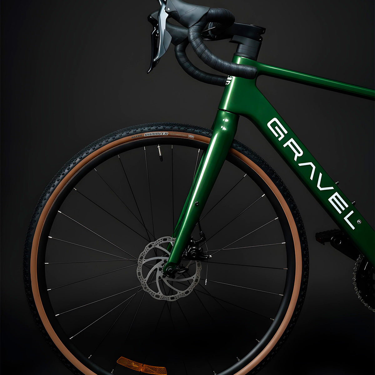 Cuadro 700C*50C con FILLING SOIL, ligero y resistente, con horquilla de carbono para mayor absorción de vibraciones, asegurando un control preciso en cada trayecto.