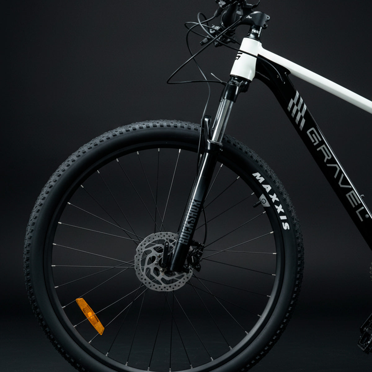 Diseñada para carreteras sin pavimentar, caminos de grava y senderos con pendientes moderadas. Este conjunto contempla el contacto frecuente con terrenos irregulares y el impacto repetido de los neumáticos. Las caídas deben limitarse a un máximo de 15 cm.
